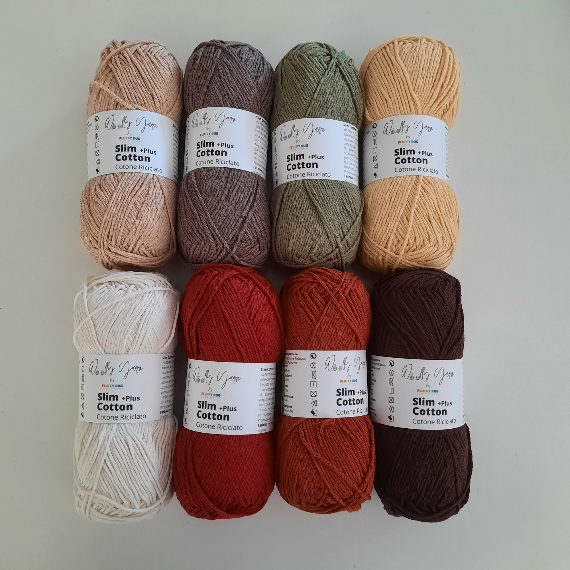 Slim Cotton Plus is made from 100% recycled fibers. With this soft and thin yarn it is very easy to create projects such as amigurumi, blankets, pillows, clothing for adults and children. It is shipped in balls of 100gr for 150mt. We recommend working it with 3 / 5mm needles and crochet hooks