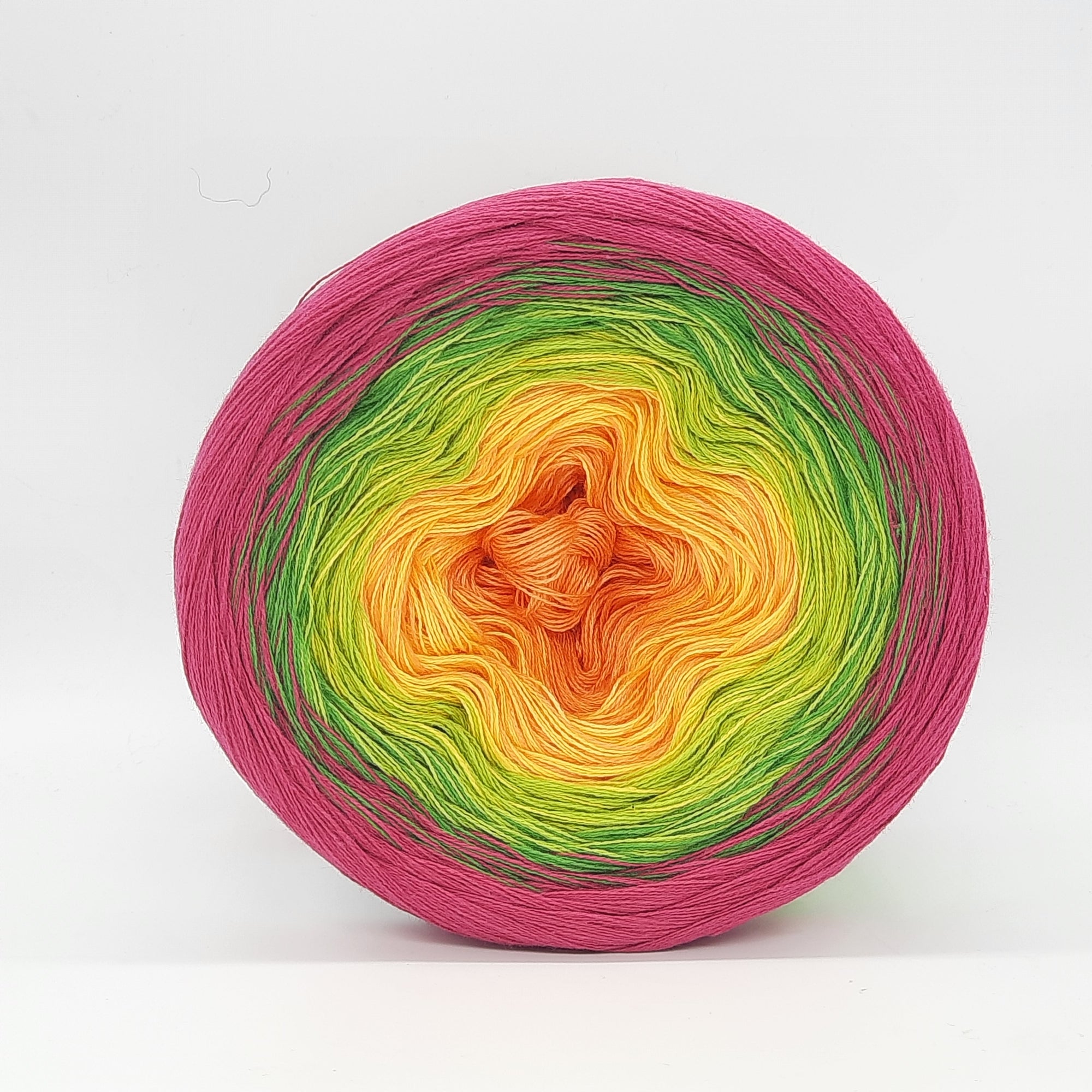 Soft Cake è realizzata in 50% cotone e 50% acrilico, è ideale per l'uncinetto e la lavorazione a maglia di accessori moda. Con questo filato graident dal colore morbido è molto facile creare progetti come scialli, berretti, cardigan e molto altro. Il filato è composto da 4 fili non ritorti per mantenere la morbidezza. Il gomitolo pesa 250gr per 1000 metri. Consigliamo di lavorarlo con ferri/ uncinetti 2.5/4mm in base al progetto.