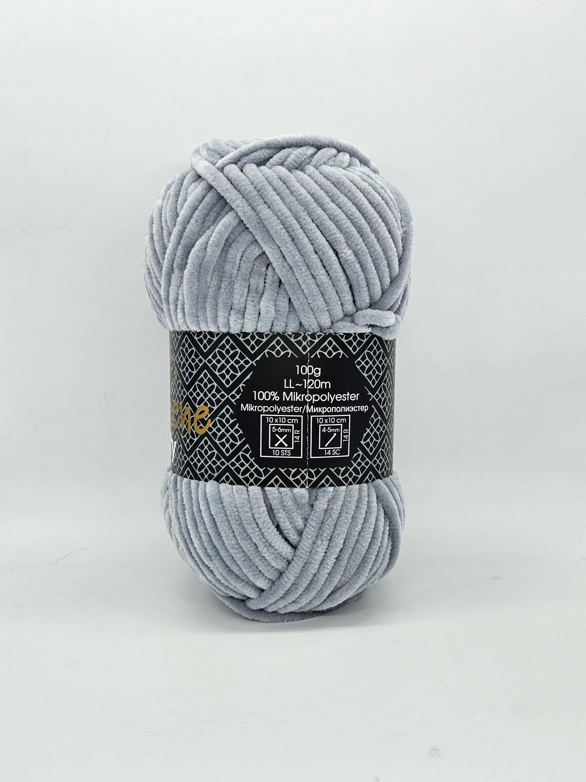 Gomitolone di morbida ciniglia in micropolyester. Perfetta per realizzare sia capi che pupazzi per bambini. Il gomitolo pesa 100gr per 120metri. Consigliamo di lavorarlo con ferri e uncinetti 4/6mm.