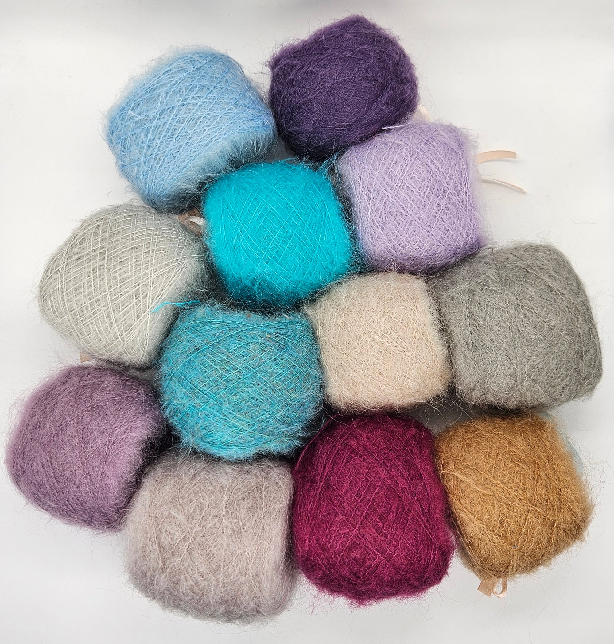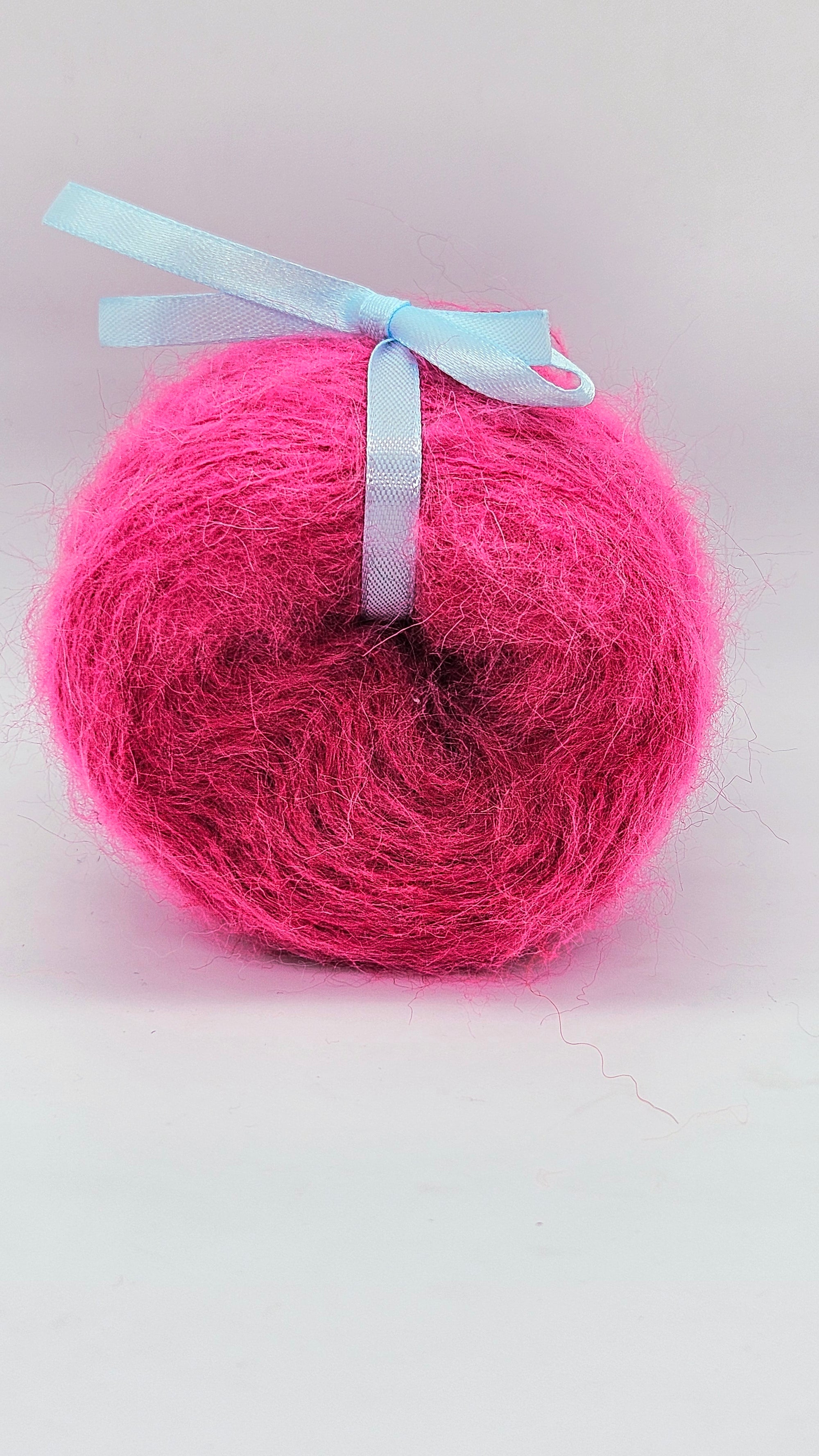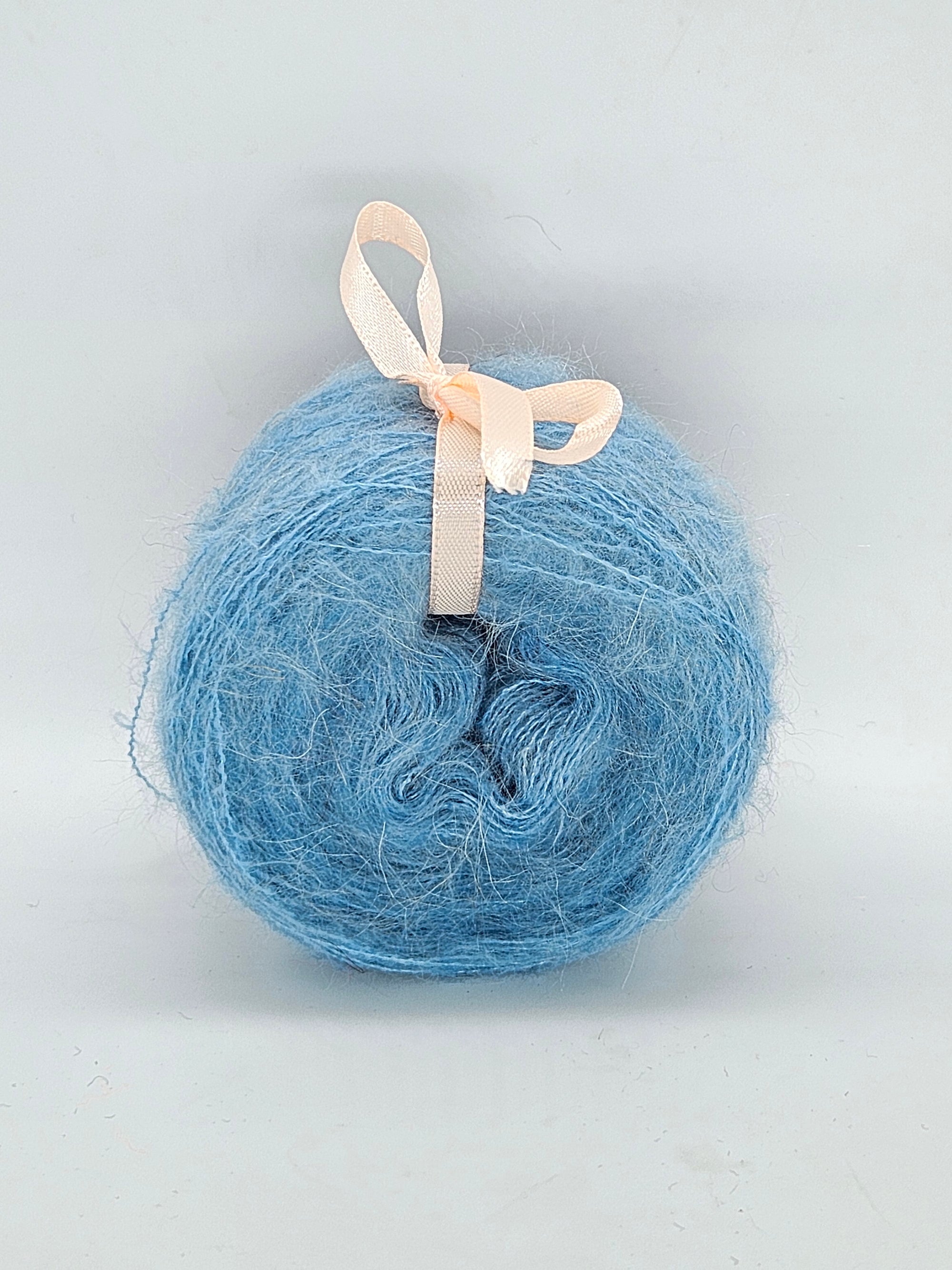 Morbido filato sottile composto da 30% kid mohair 32% poliammide 38%acrilico. Perfetto per creare capi leggeri e vaporosi. Viene spedito in cake da 25gr per 240 mt. Consigliamo di lavorarlo morbido ad un capo con ferri e uncinetti 2.5/3mm o a due capi con 4.5mm/5mm.