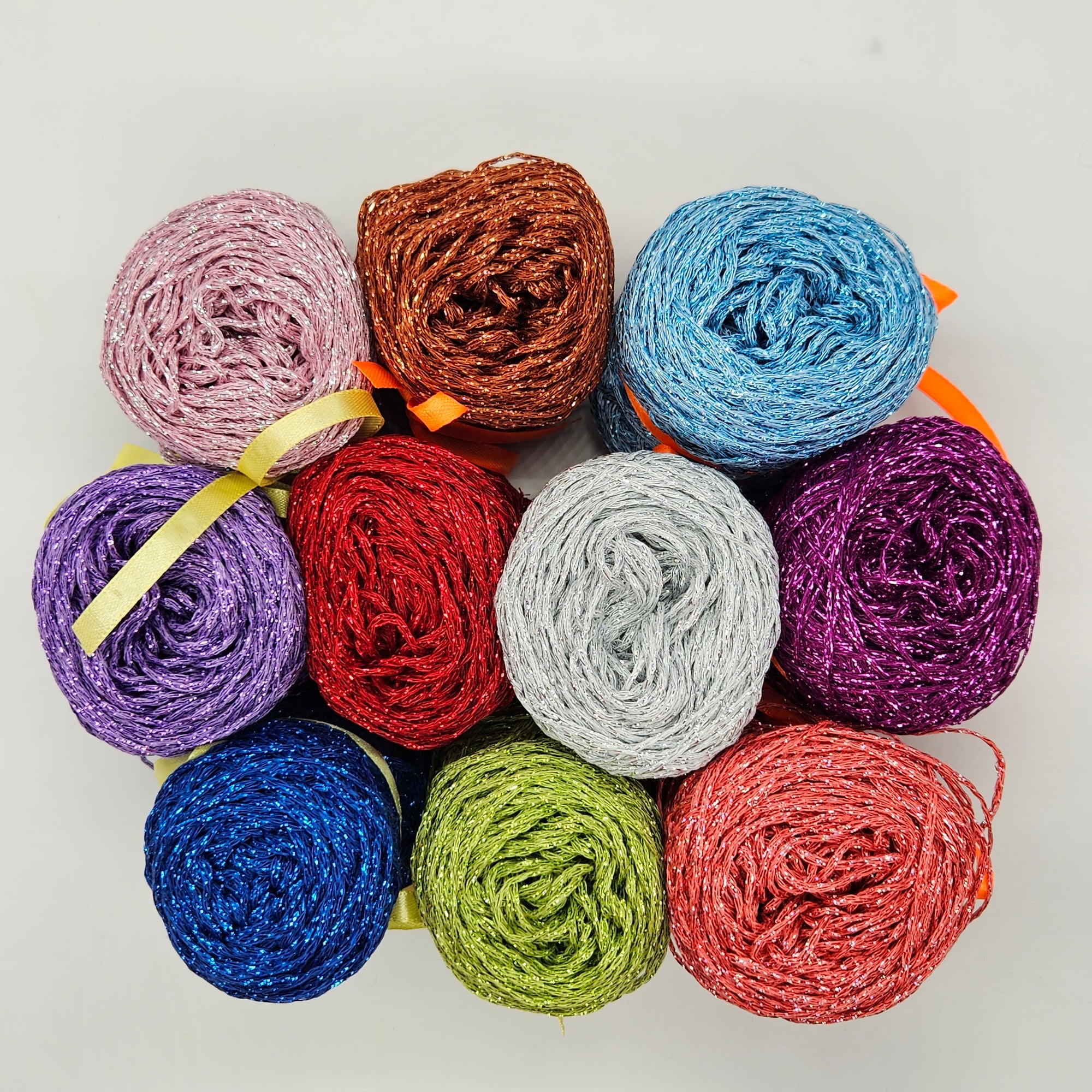Visco Lux è un morbido filato composto da 80% Viscosa e 20% Metal. Ideale per realizzare capi estivi, cappelli, borse e pochette oppure da unire ad altri fili anche invernali come parte luccicosa. Questo kit nasce proprio per realizzare piastrelle granny luccianti, i gomitoli hanno tutti grammature diverse per un totale di 240 gr per 910 metri. Il colore bianco/argento e il fucsia scuro sono leggermente più sottili degli altri.