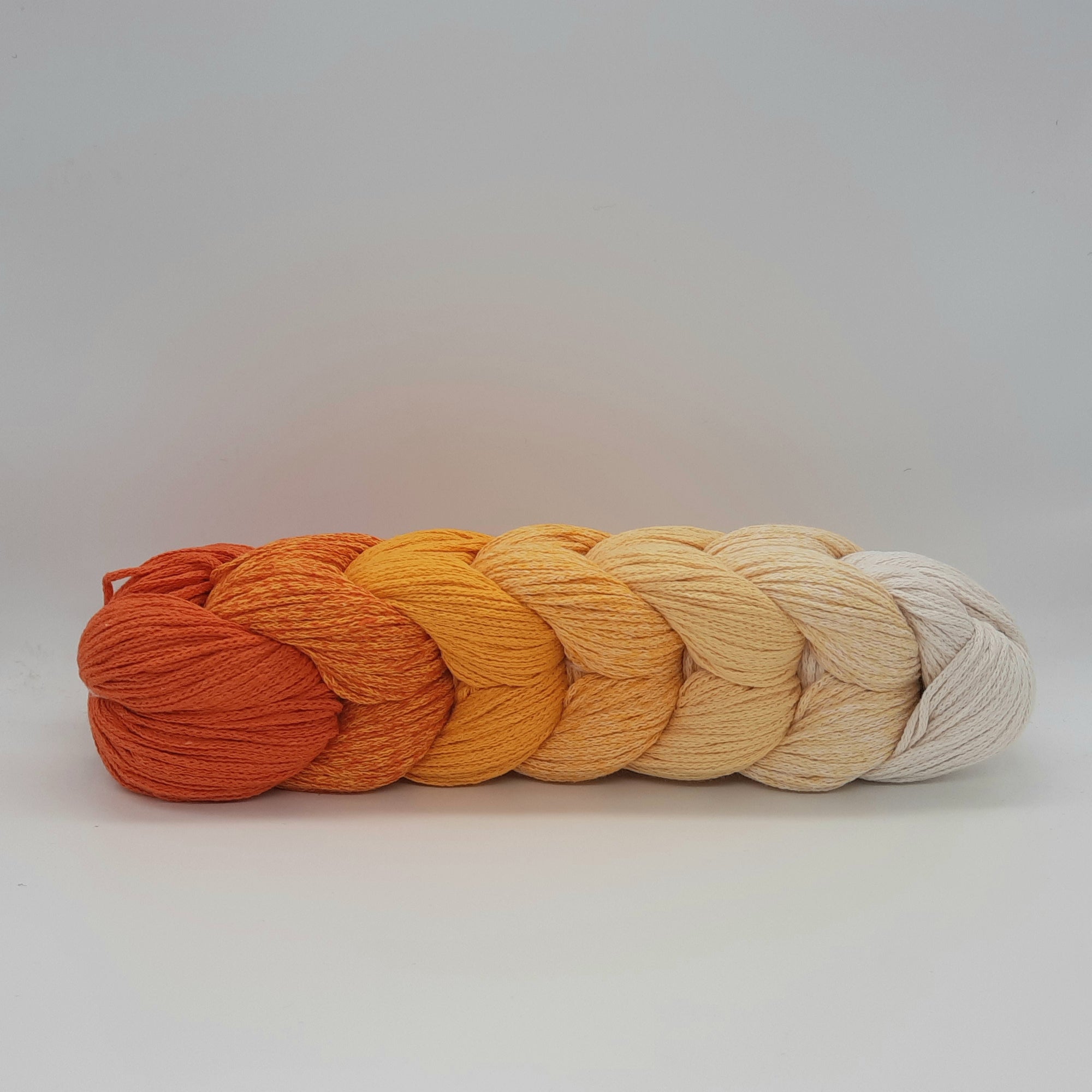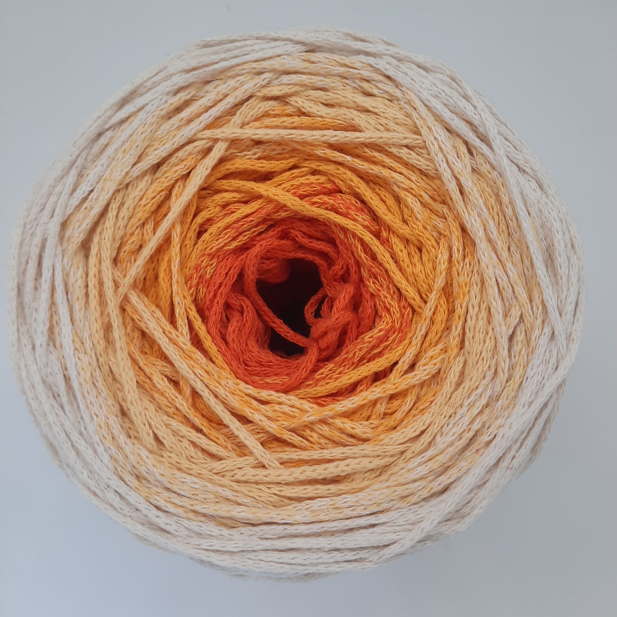 The Braidy Ombre yarn, made with 100% recycled fibers, is ideal for crocheting and knitting accessories for the home and fashion. With this color gradient woven yarn it is very easy to create projects such as bags, pillows, rugs and much more. The braid is made up of 70% recycled Cotton and 30% Polyester, weighs 250gr by 250mt. We recommend working it with 3.5 / 4.5mm needles and crochet hooks. You can have it braided or skewered by us in cake.