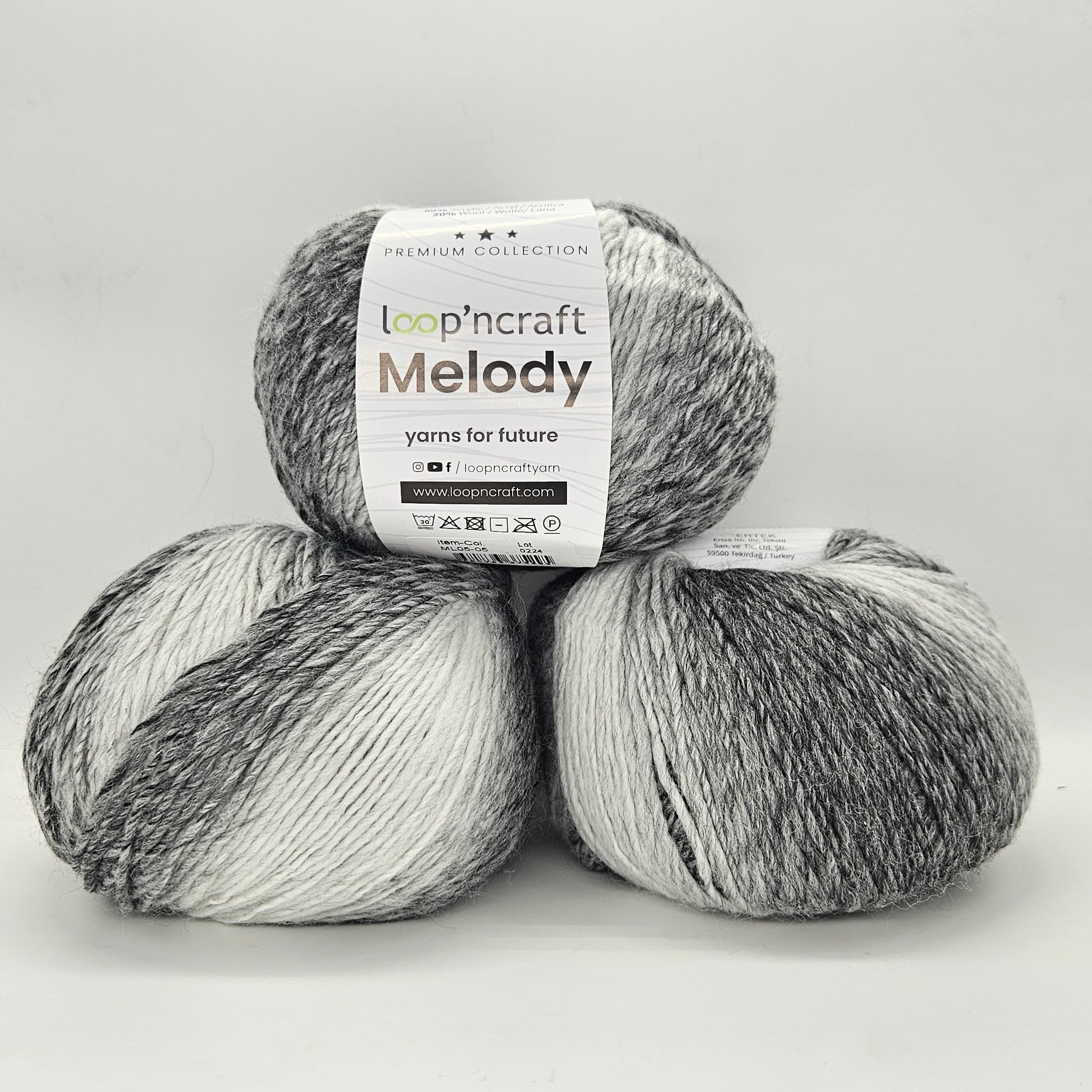 Melody è un caldo e morbido filato composto da 80% Acrilico 20% lana molto soffice dai toni sfumati. Il Gomitolo pesa 50gr e sviluppa 200 metri. Consigliamo di lavorarlo con ferri e uncinetti 3/4mm.