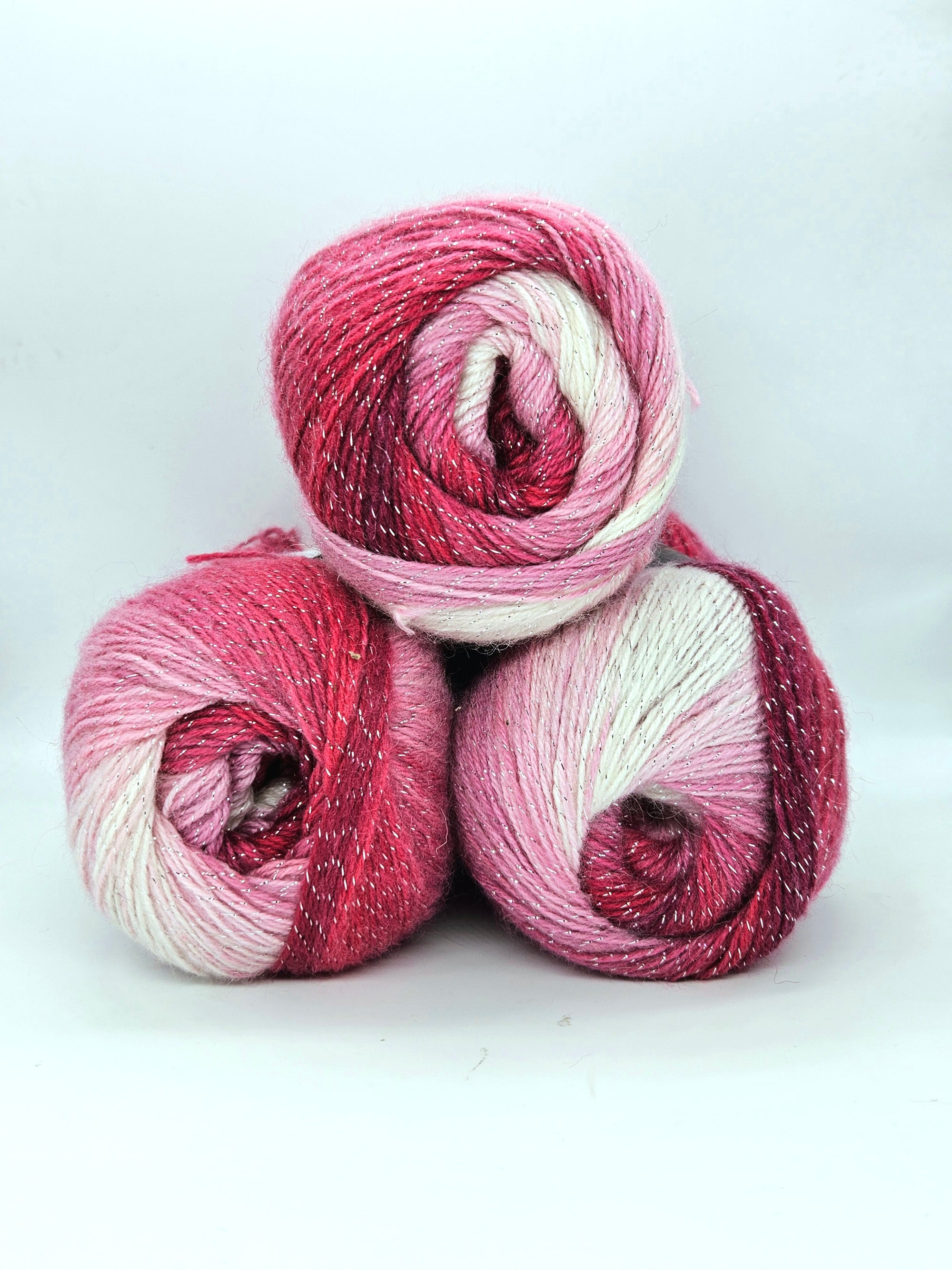 Batik es un hilo fino y suave con muchos tonos de color. Está compuesto por 75% acrílico 20% lana 5% Lurex. El balón rinde mucho, pesa 100gr para 550 metros, 2 balones alcanzan para una camiseta talla S/M. Agujas recomendadas 3/3,5 mm Ganchillos 2/2,5 mm.