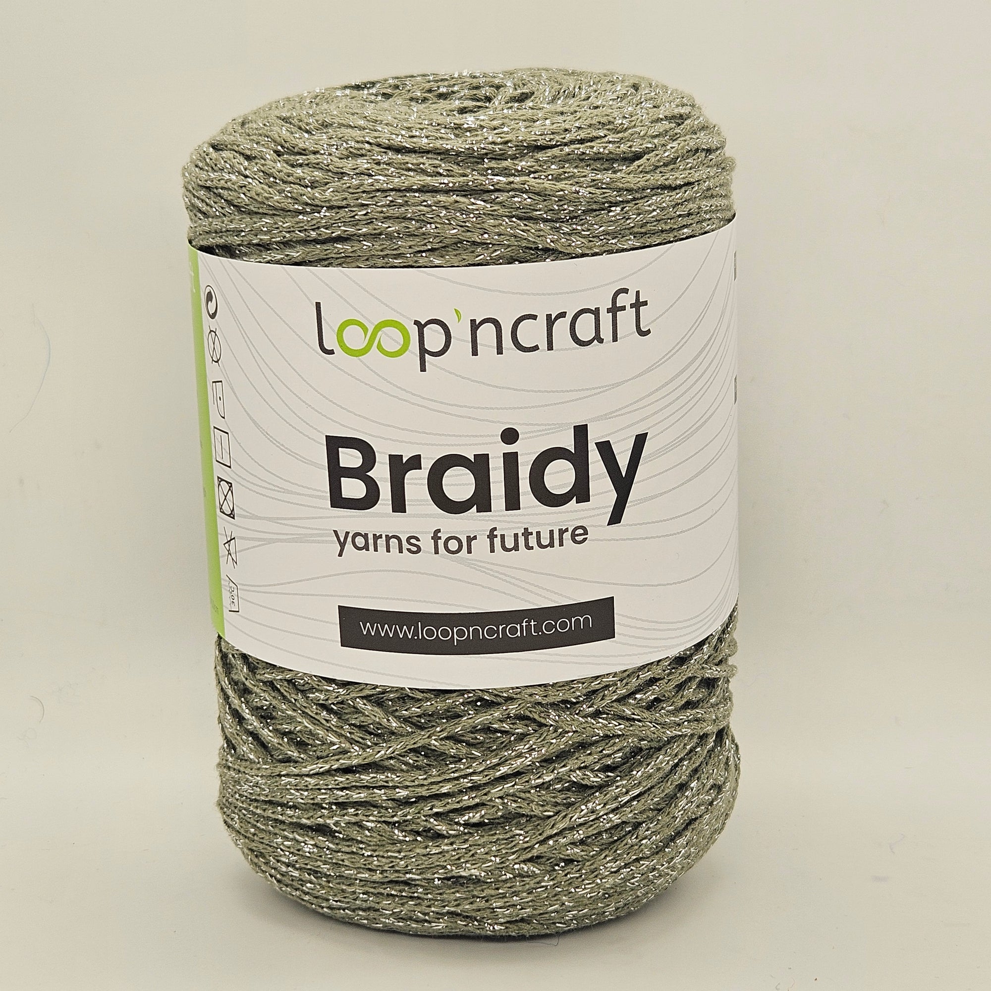 Il filato Braidy è realizzato con fibre riciclate al 100%, è l'ideale per lavorare all'uncinetto e lavorare a maglia accessori per la casa e la moda. Con questo filato intrecciato sfumato di colore è molto facile creare progetti come borse, cuscini, tappeti e molto altro. Il gomitolo pesa 250gr per 250 mt. Ferri e uncinetti consigliato 3.5/4.5mm