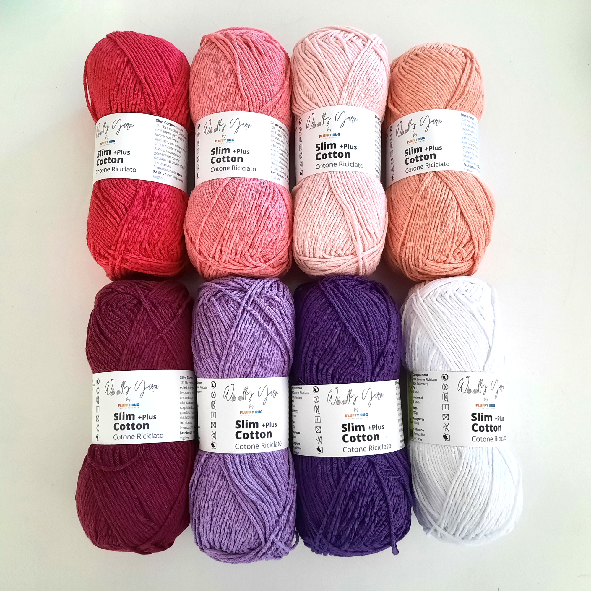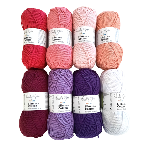 Le kit se compose de 8 pelotes de laine comme sur la photo. Slim Cotton Plus est composé à 100% de fibres recyclées. Avec ce fil doux et fin, il est très facile de créer des projets tels que des amigurumi, des couvertures, des oreillers, des vêtements pour adultes et enfants. Les balles de 100gr pour 150mt. Nous vous conseillons de le travailler avec des aiguilles 3/5mm et des crochets.