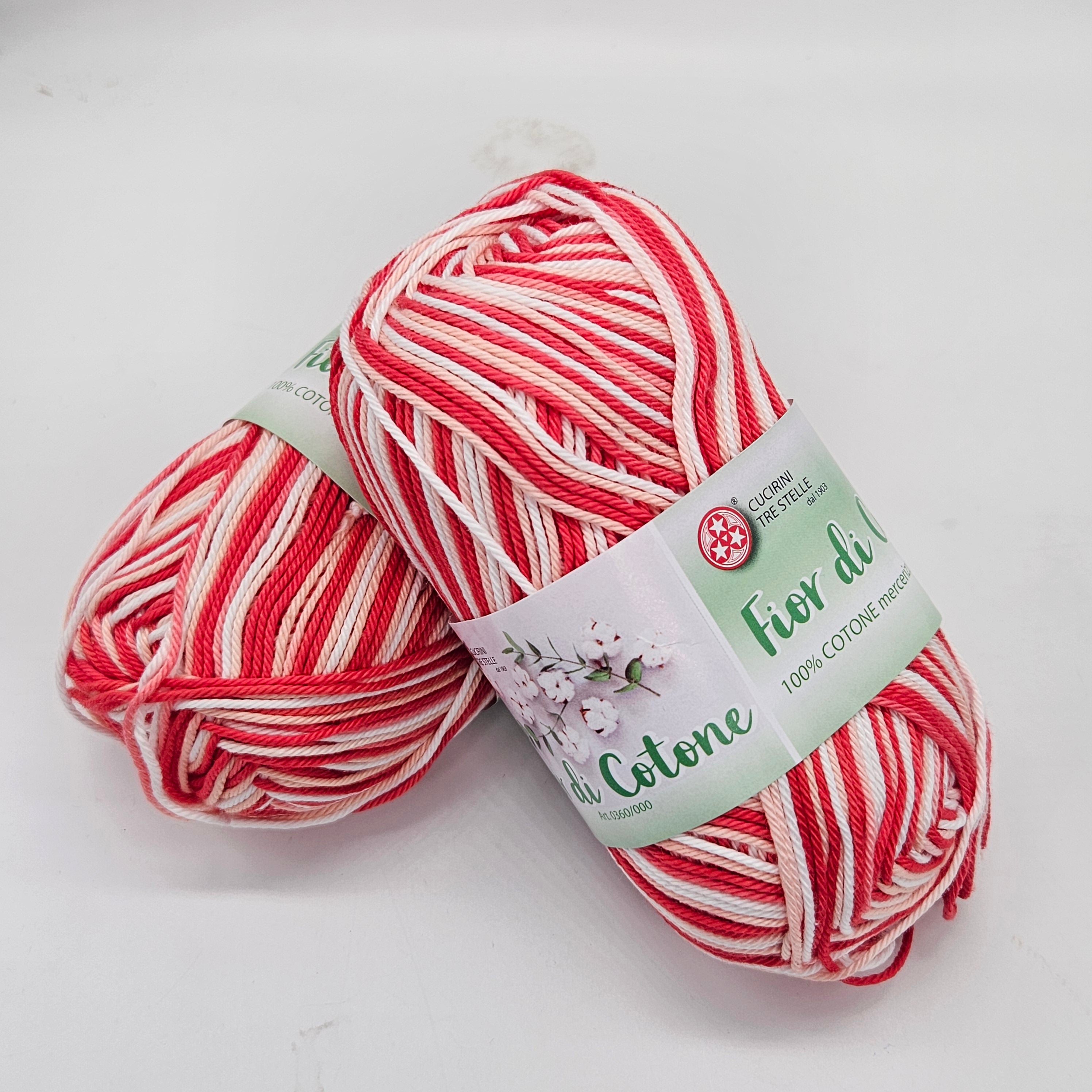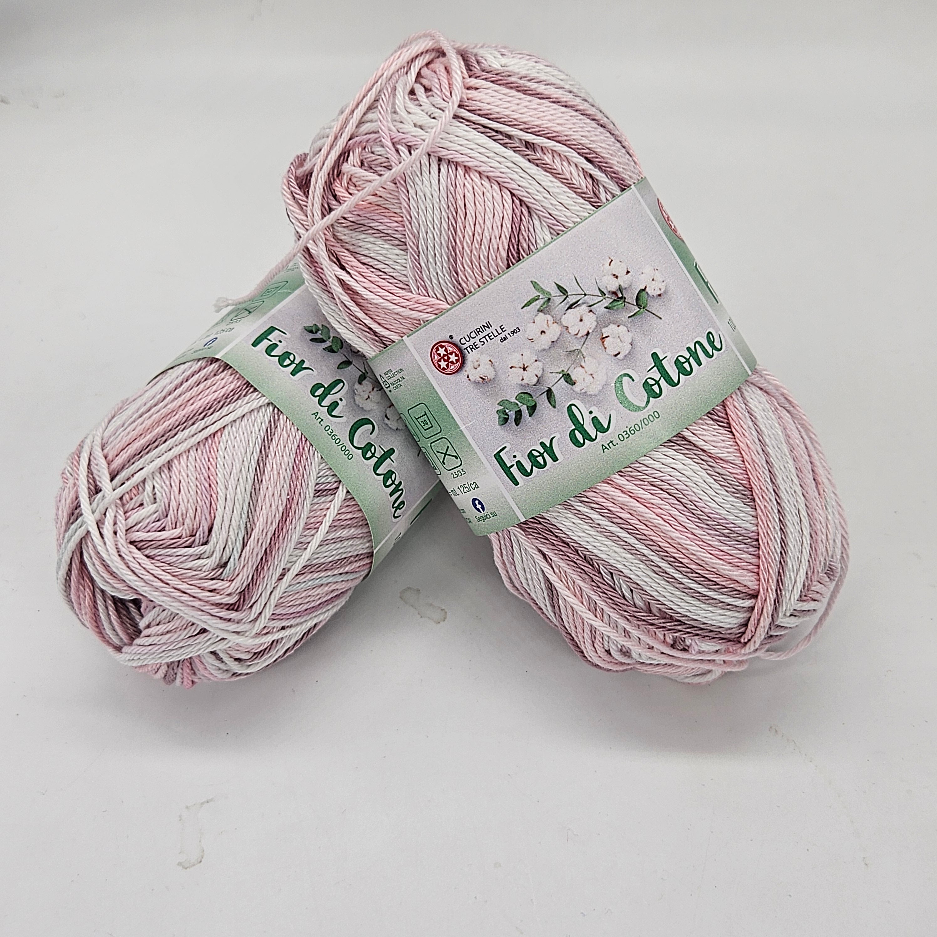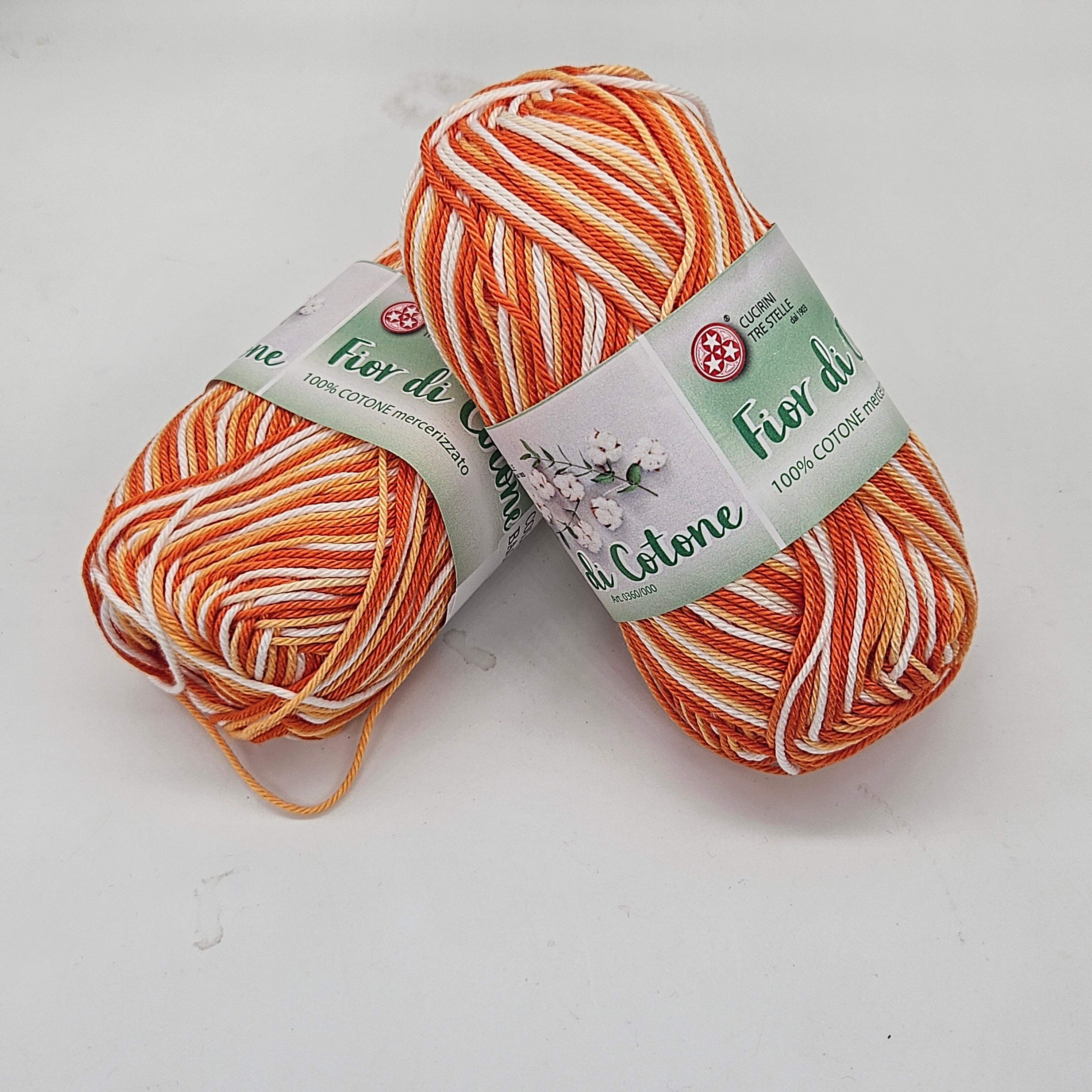 Fior di Cotone est un fil doux, nuancé et bien tordu en 100% coton mercerisé. Il est expédié en boules de 50gr pour 125mt. Ferii et crochets recommandés 2,5 / 3,5 mm
