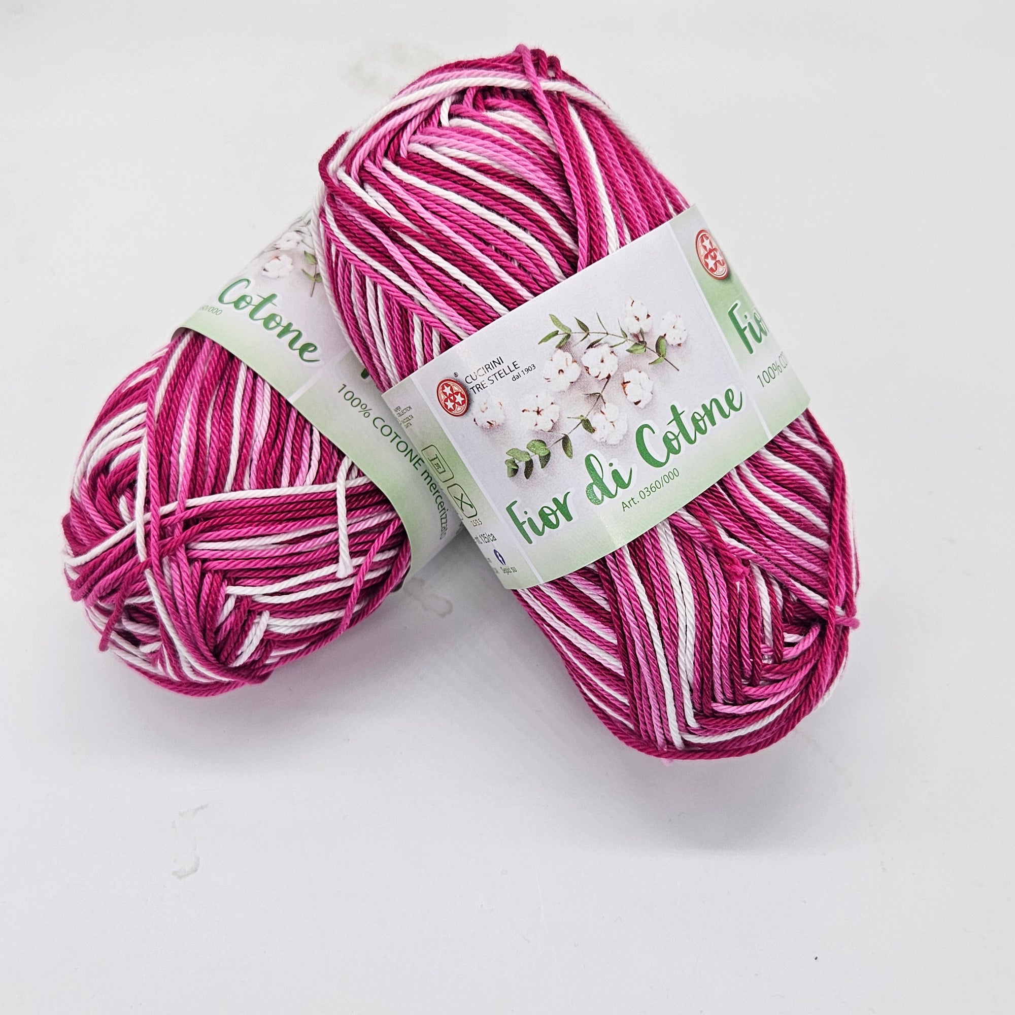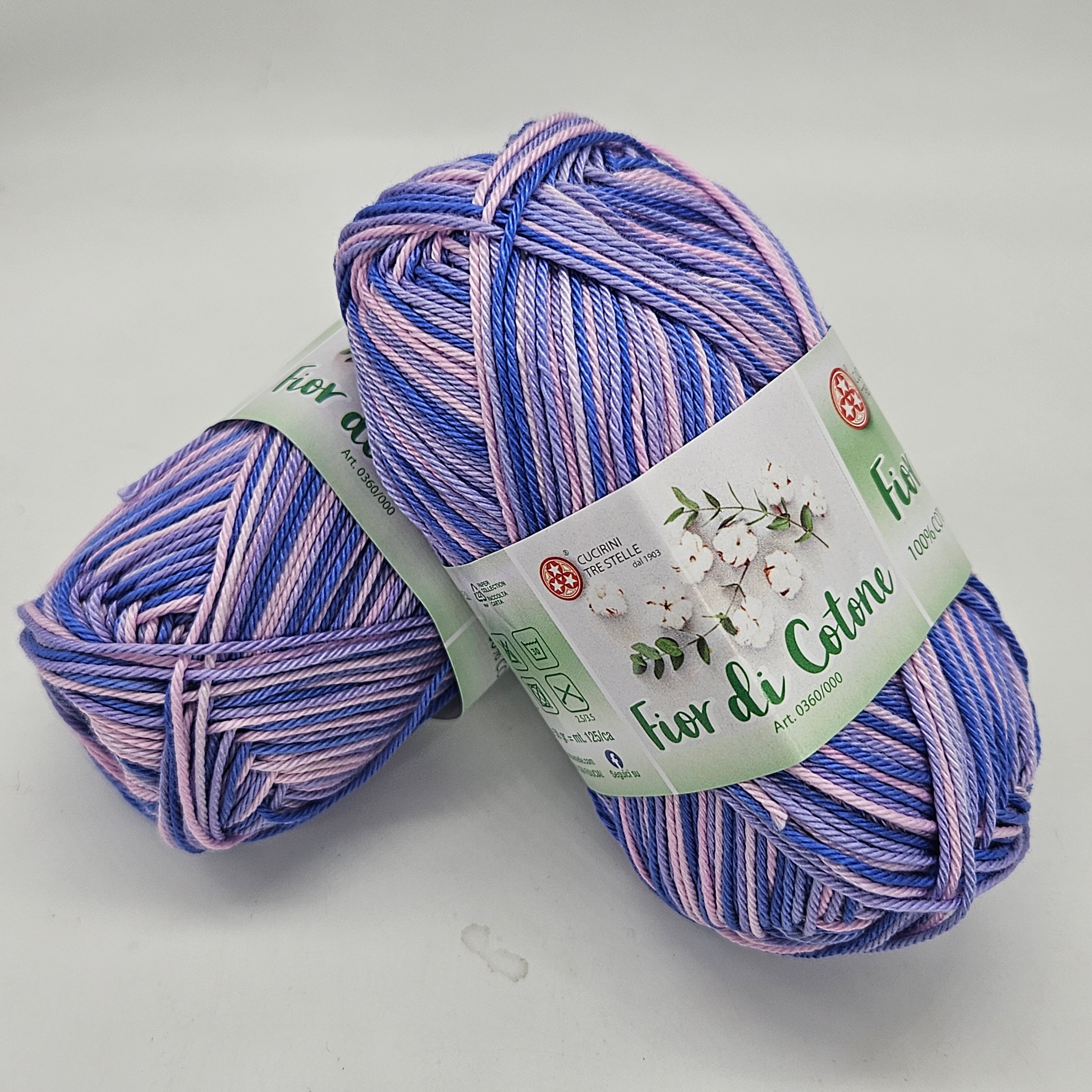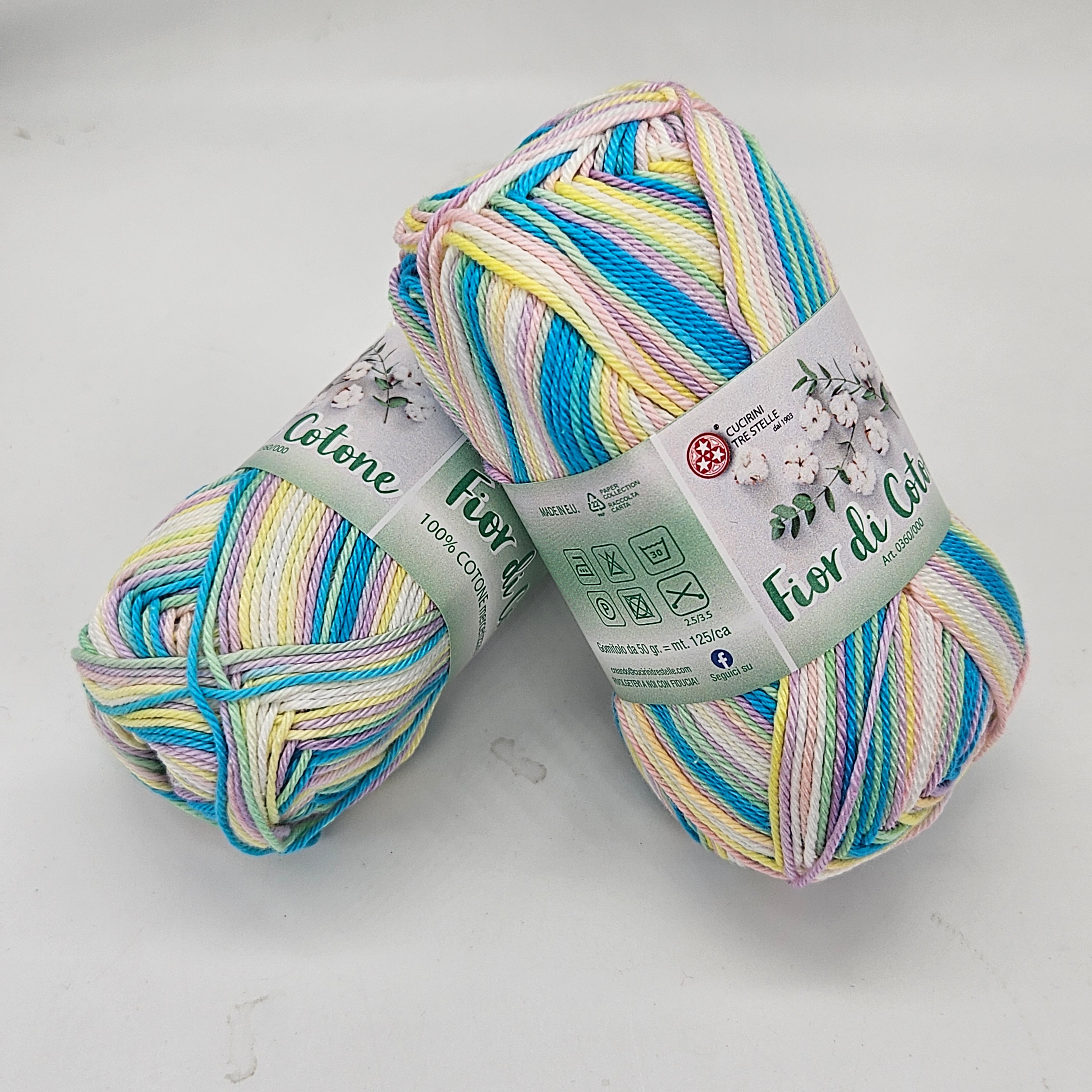 Fior di Cotone est un fil doux, nuancé et bien tordu en 100% coton mercerisé. Il est expédié en boules de 50gr pour 125mt. Ferii et crochets recommandés 2,5 / 3,5 mm