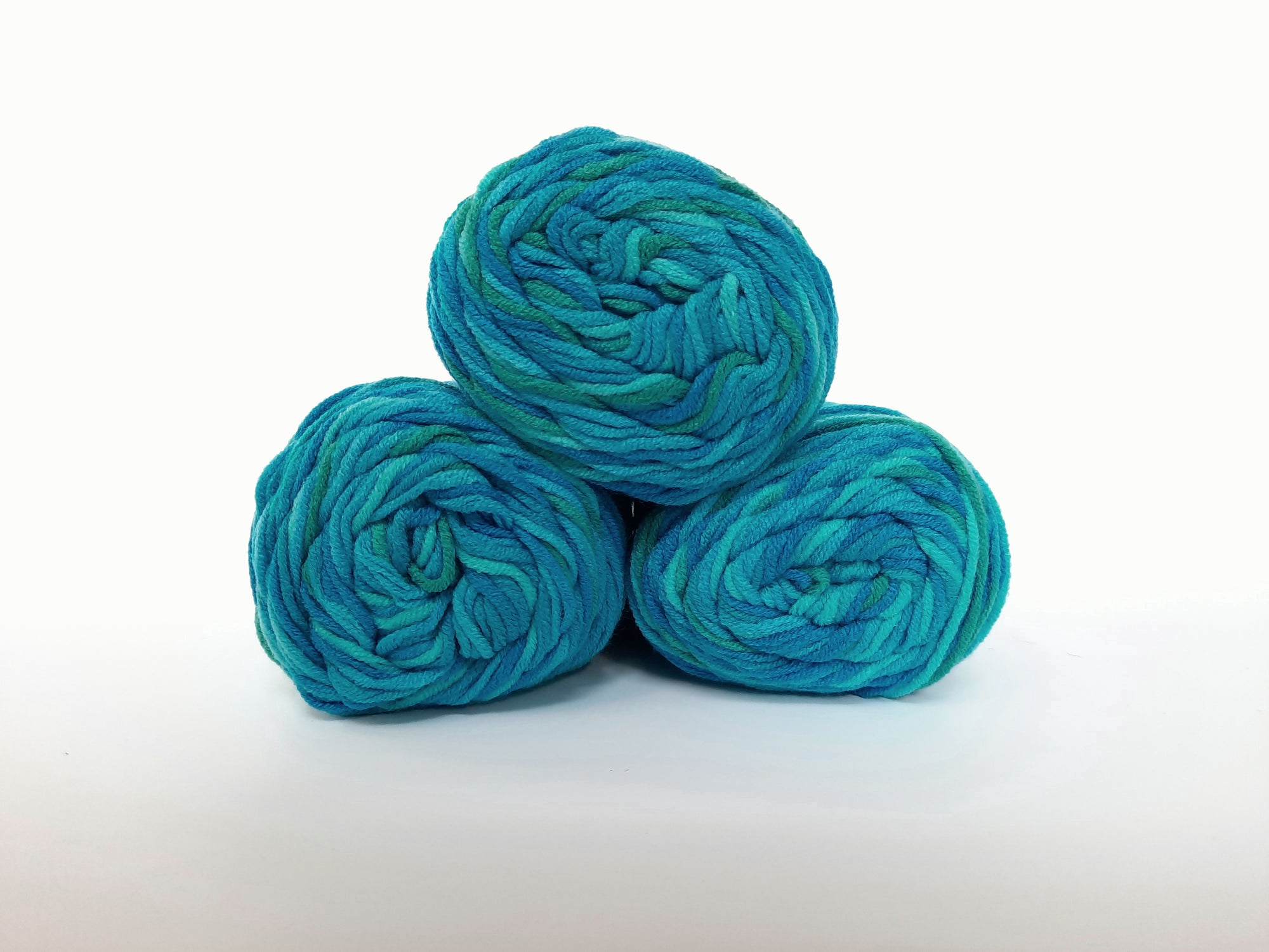 La balle pèse 100 gr pour 200mt et nous vous recommandons de la travailler avec des aiguilles 4,5 / 5 et des crochets.