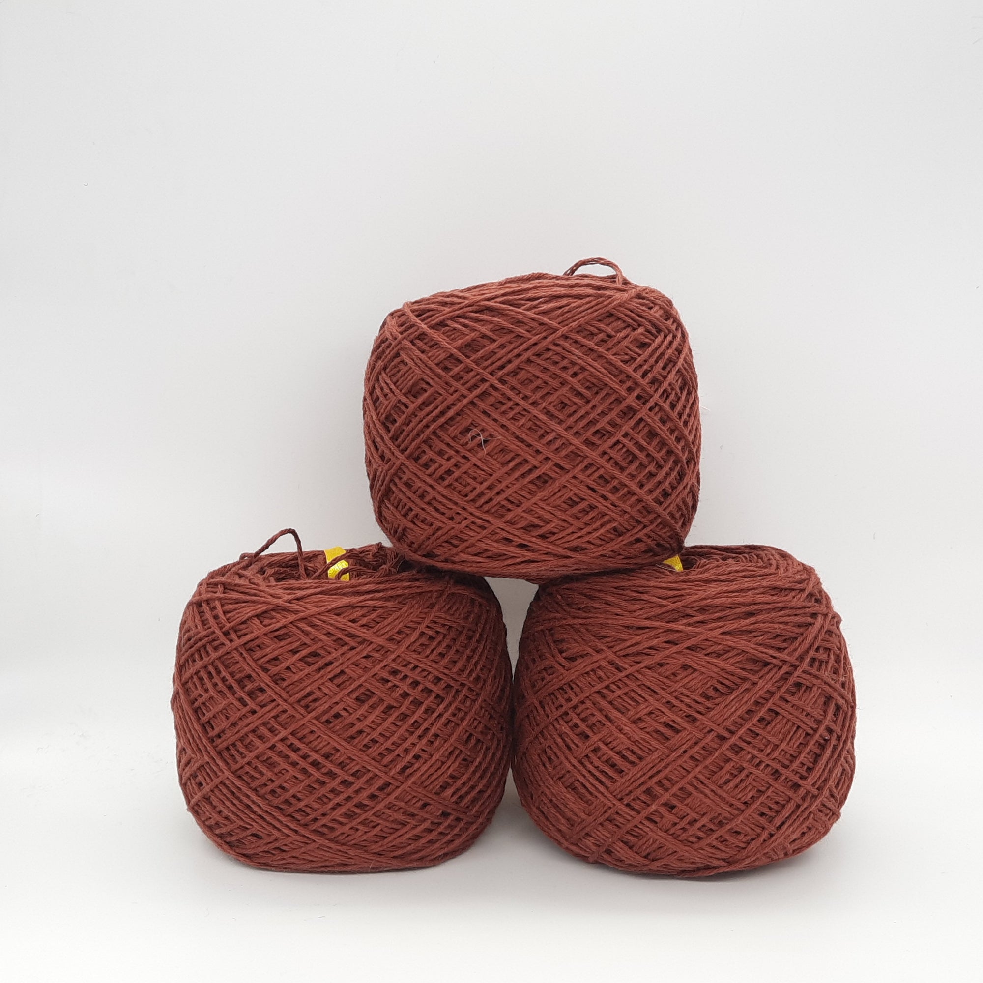 Fil 100% coton très doux et non brillant, couleur cognac. Il est expédié en gâteau de 100gr pour 350mt. Nous vous conseillons de le travailler avec des aiguilles et des crochets 2,5/3mm