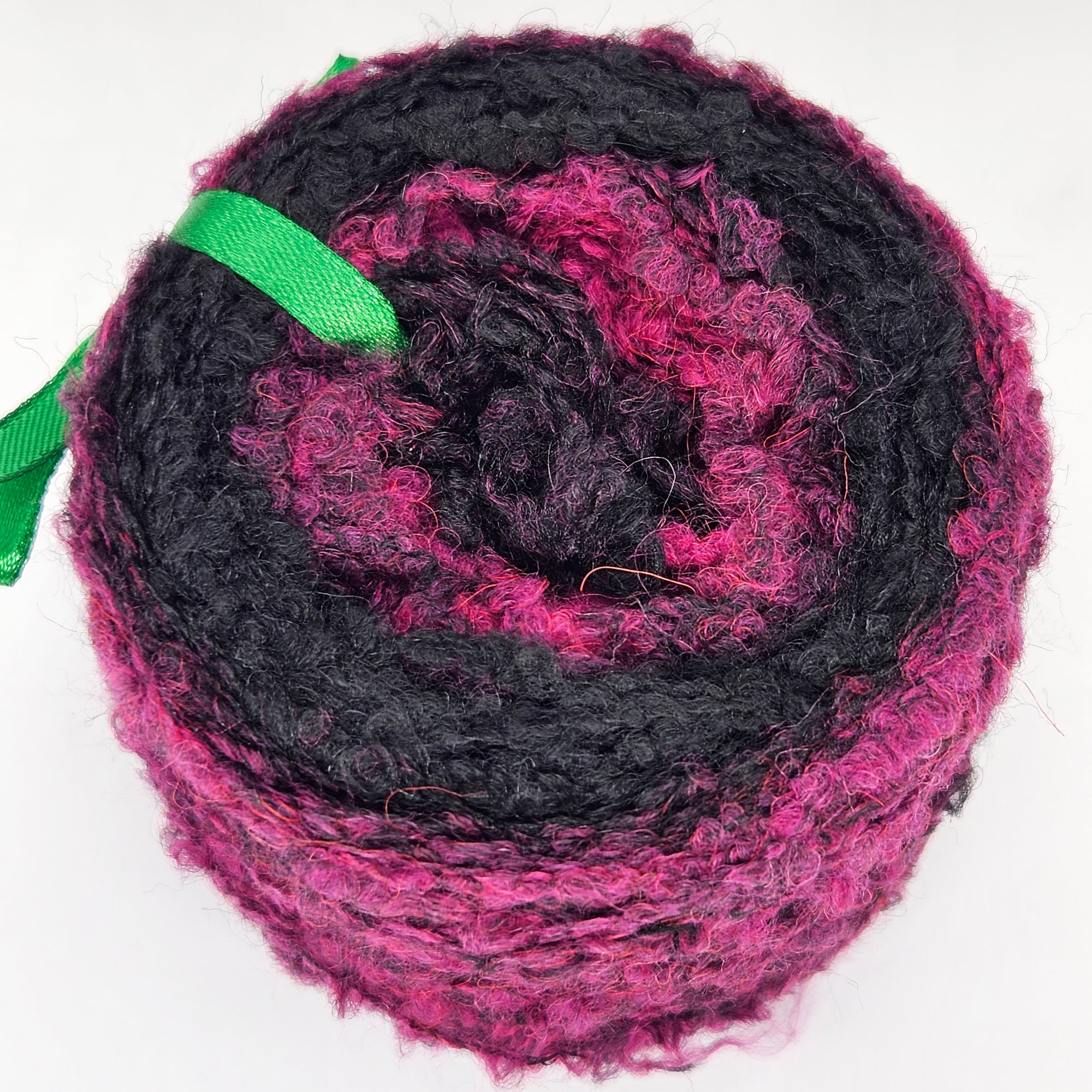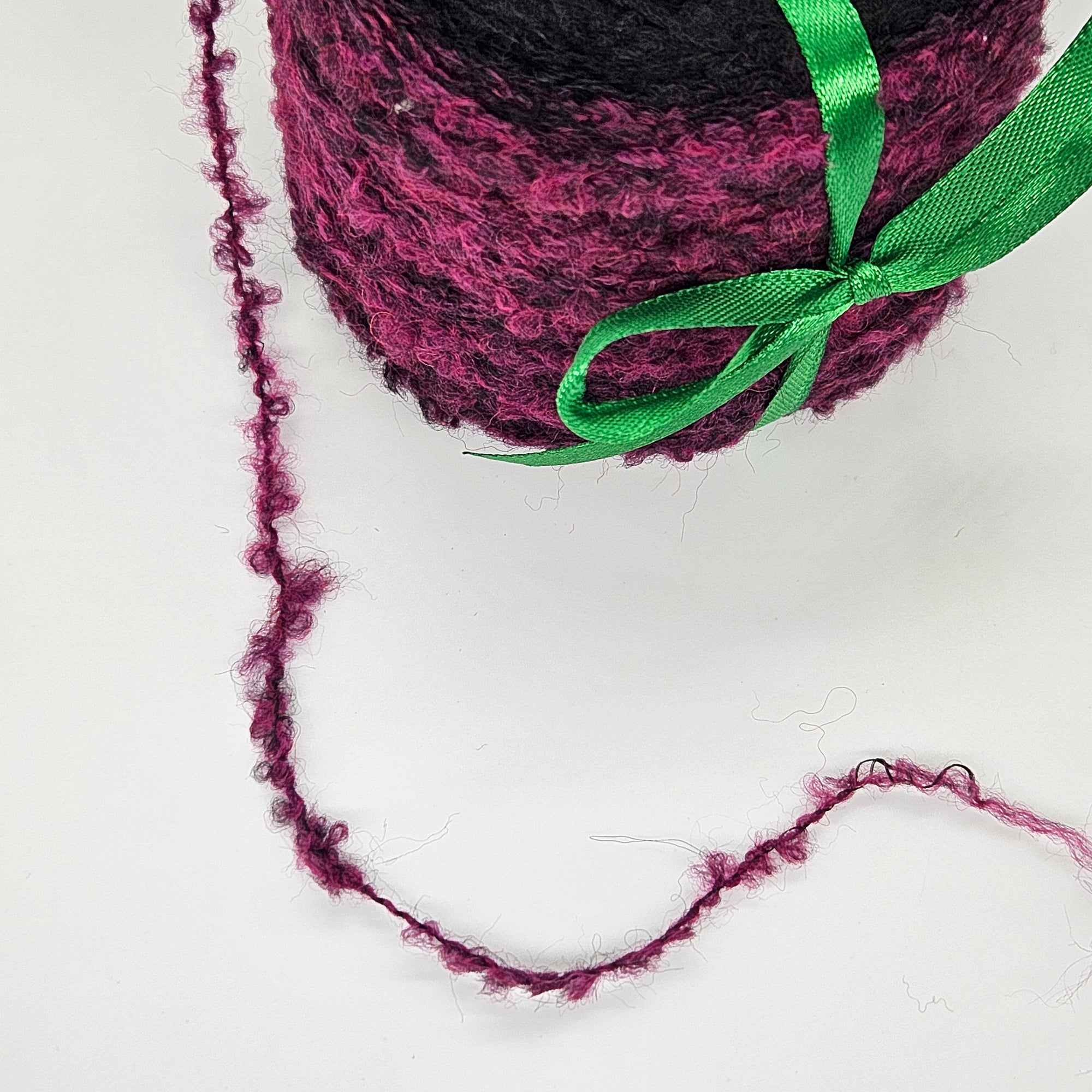 Forest è un morbido filato bouclè sfumato, che va dal lampone al nero gradualmente. E' composto da 6%Alpaca 14% Lana 63% Fibra Poliacrilica 17%Poliammide. Viene spedito in cake da 50gr da 160 metri. Perfetto per capi e accessori unici. Consigliamo di lavoralo con ferri e uncinetti 4/4.5mm.