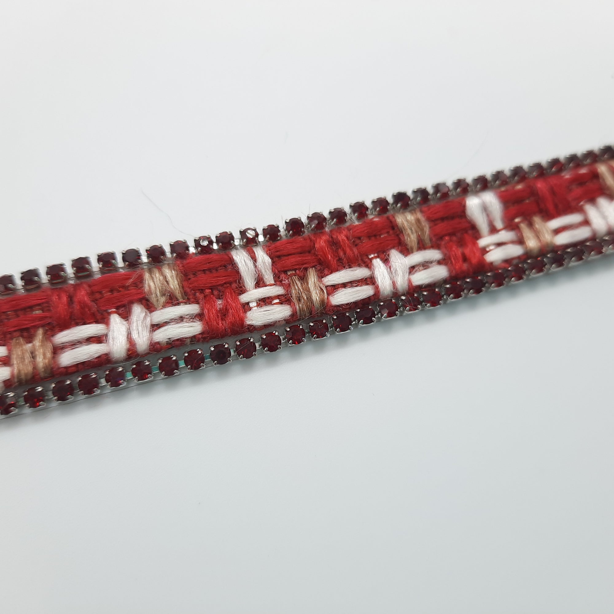 Opstrijkgarnituren perfect voor het decoreren van tassen, accessoires en kleding. Hoogte 1cm. Als u meer dan 1 meter aan één stuk wilt, kunt u dit aangeven in de opmerkingen