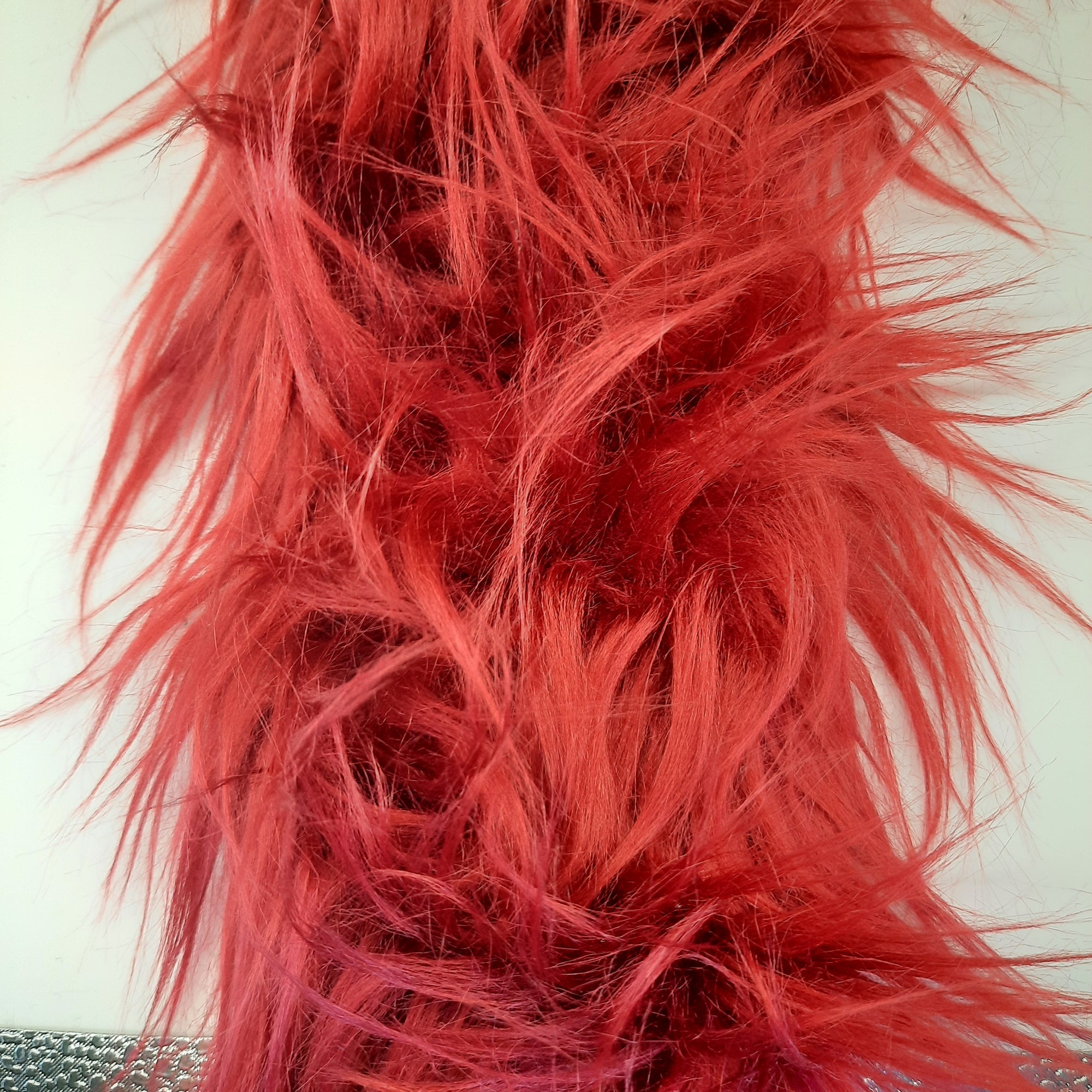 10cm hoog lang haar afsnijdsels. Perfect voor het versieren van tassen en kleding. Op de foto zie je het gekamde en onverzorgde haar