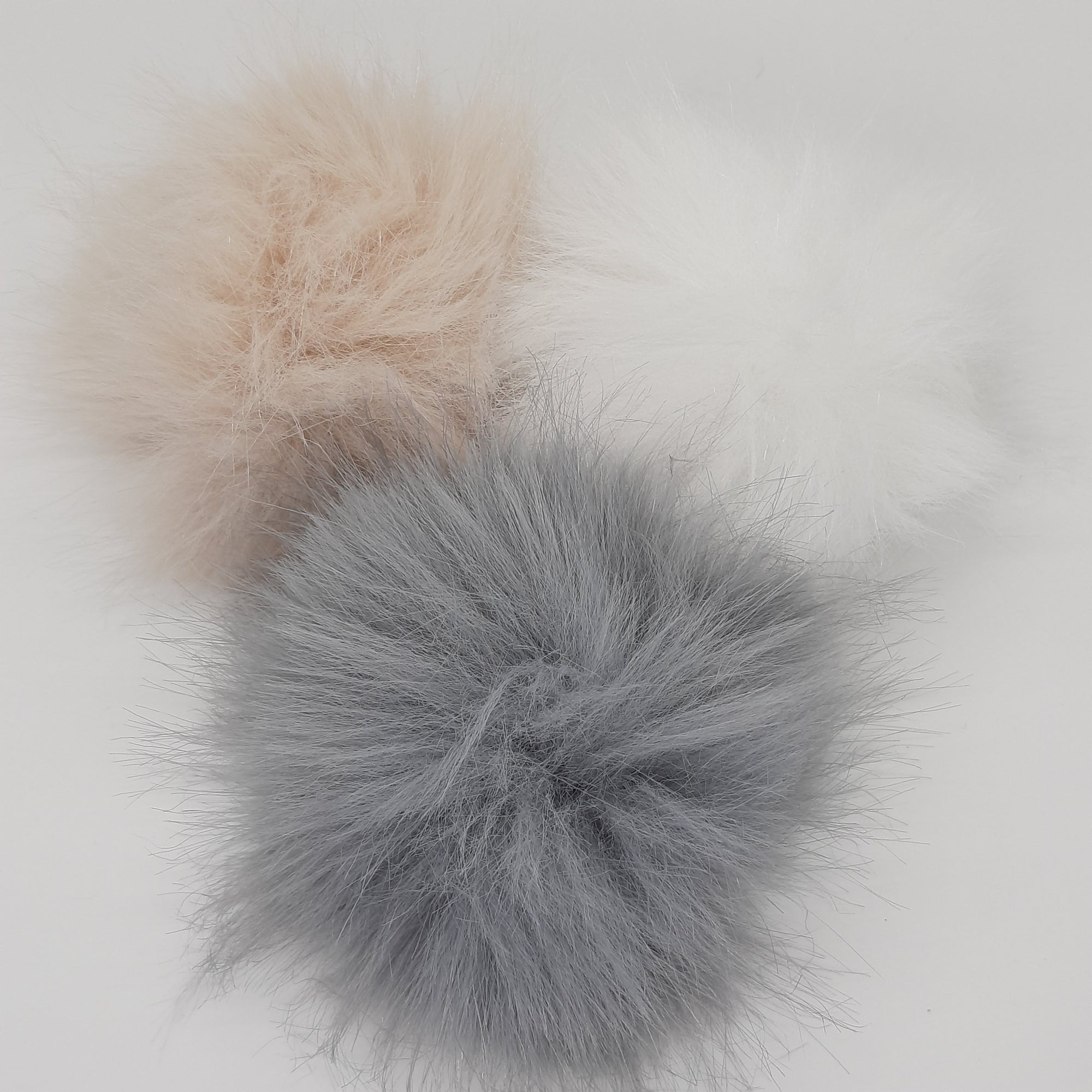 Pompon van bont van 10 cm, ideaal voor sjaals, mutsen of het maken van sleutelhangers. Ze hebben een praktische elastische band voor gemakkelijk naaien of knopen.