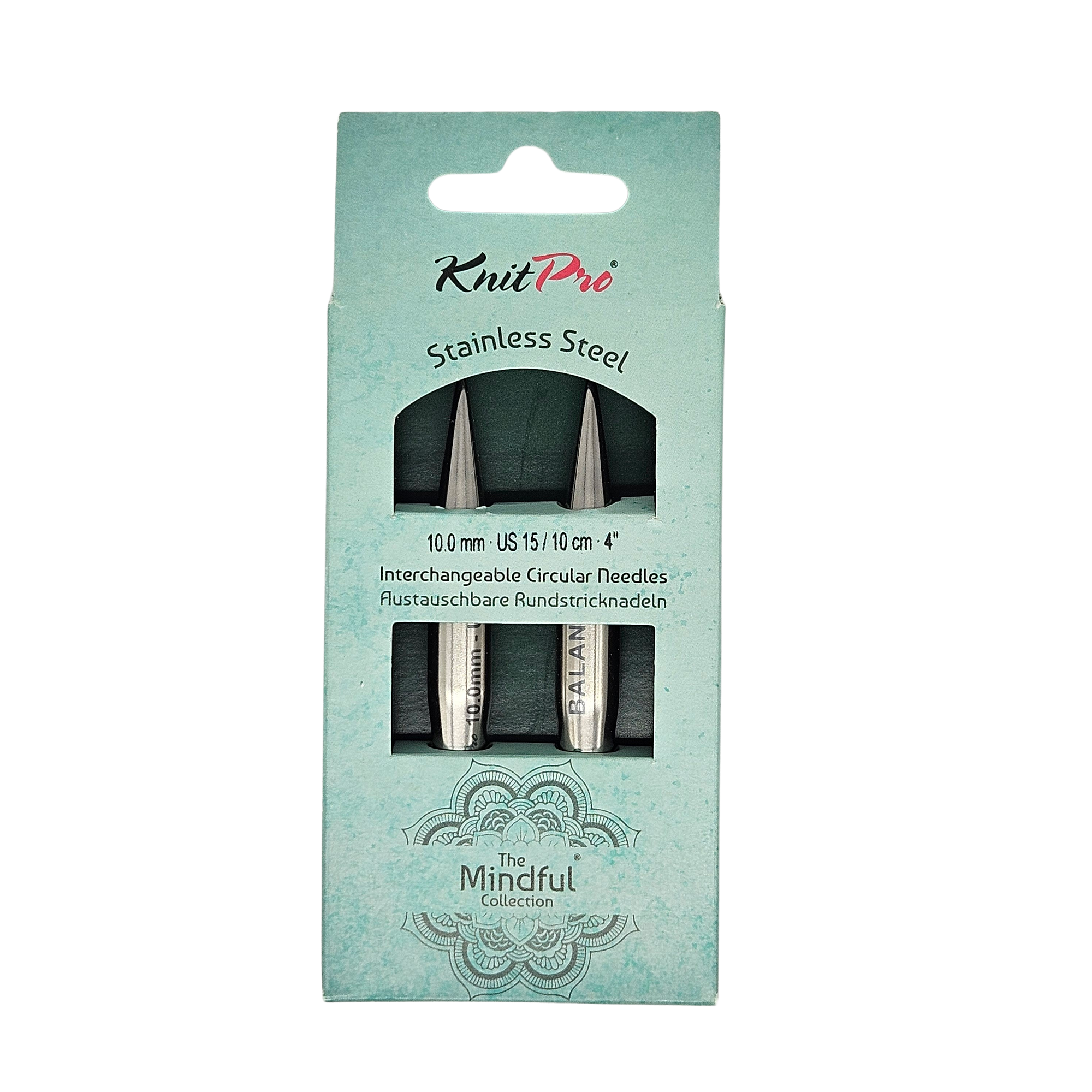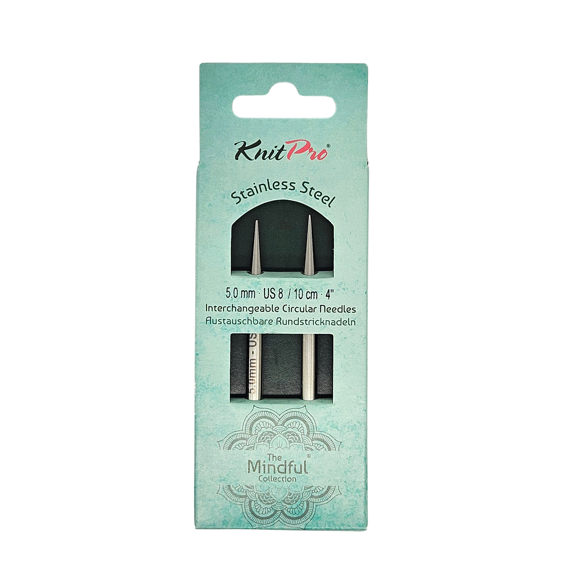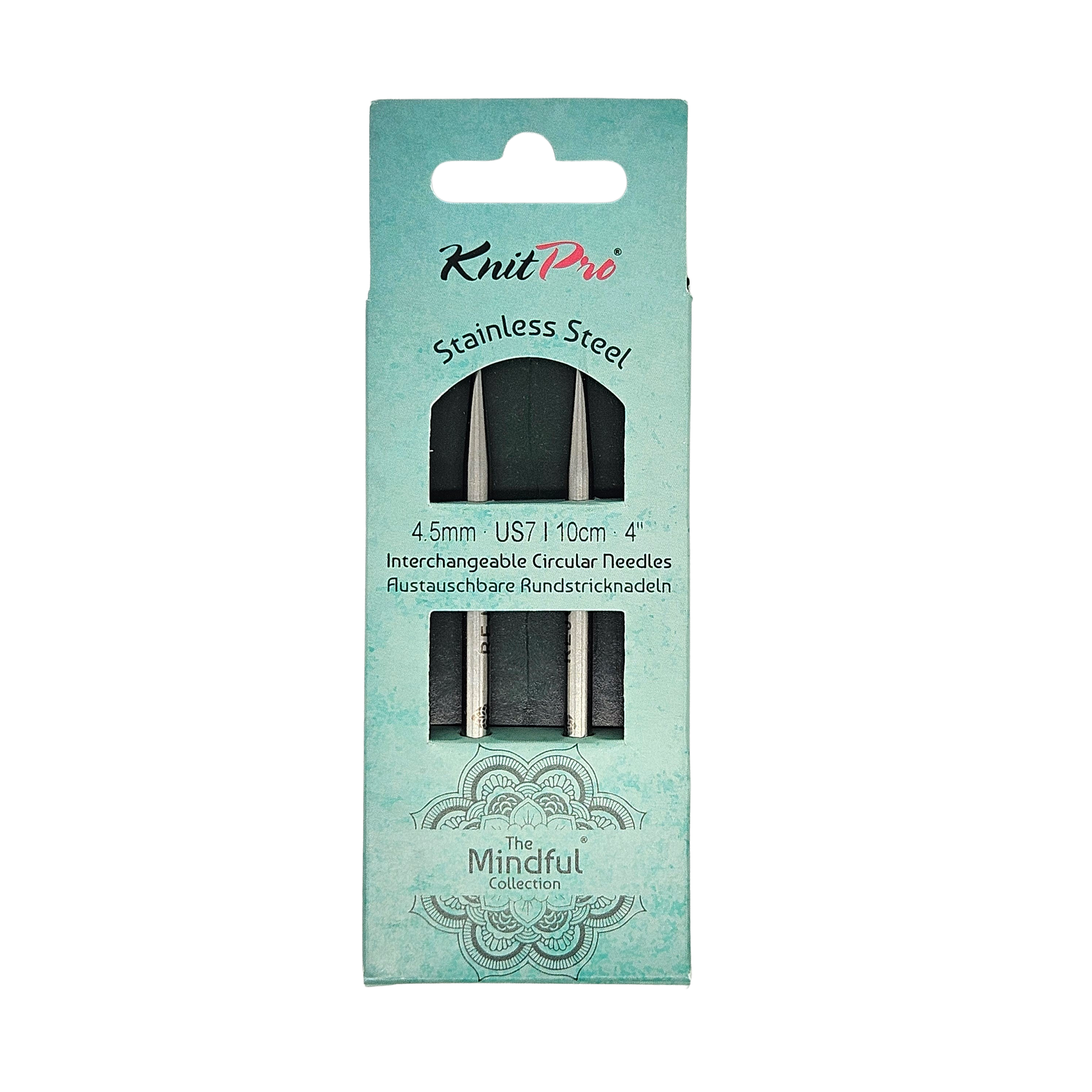 Punte intercambiabili per ferri circolari in acciaio inossidabile da 10cm. Questa lunghezza è molto comoda e permette di lavorare più velocemente. Le punte sono affusolate con finitura liscia.