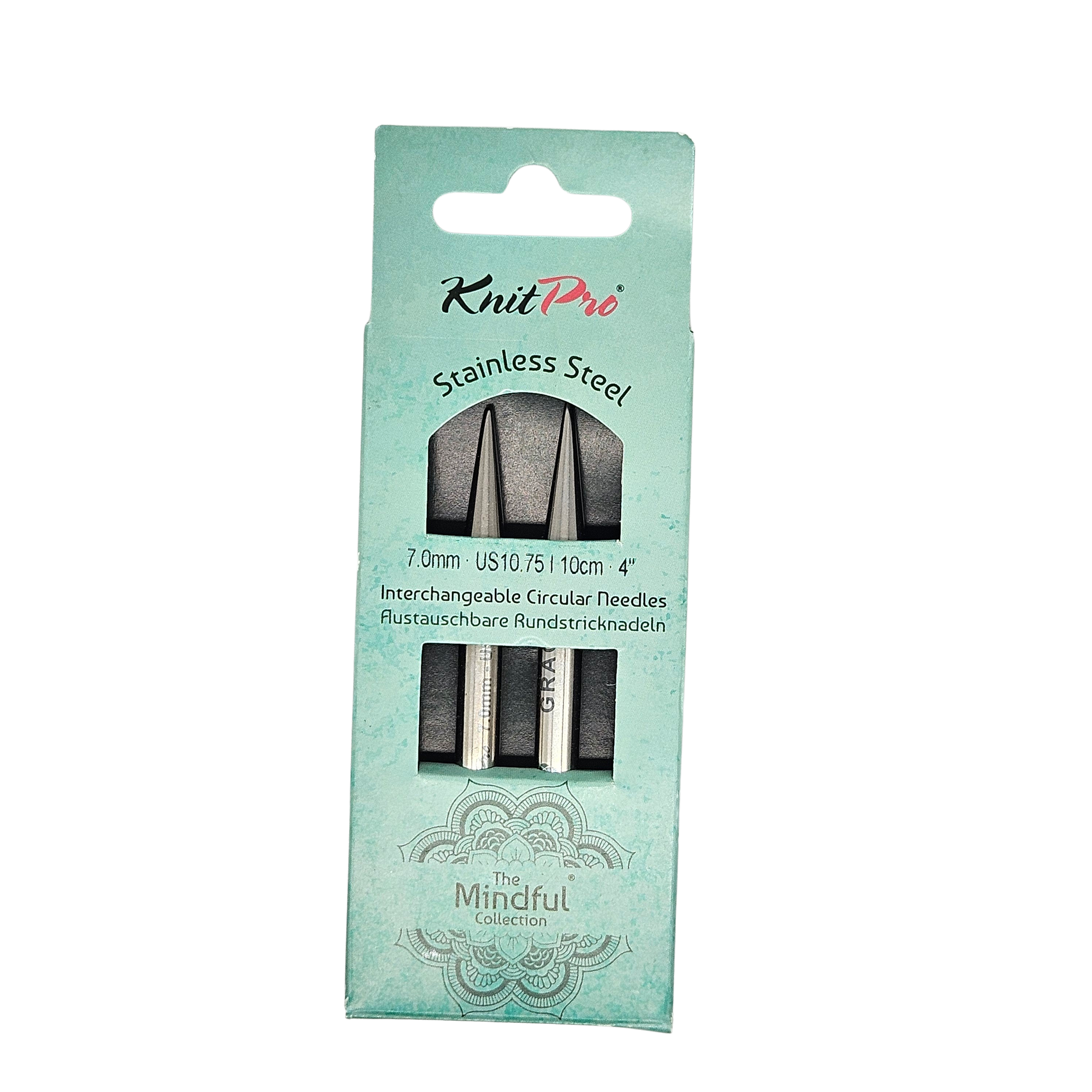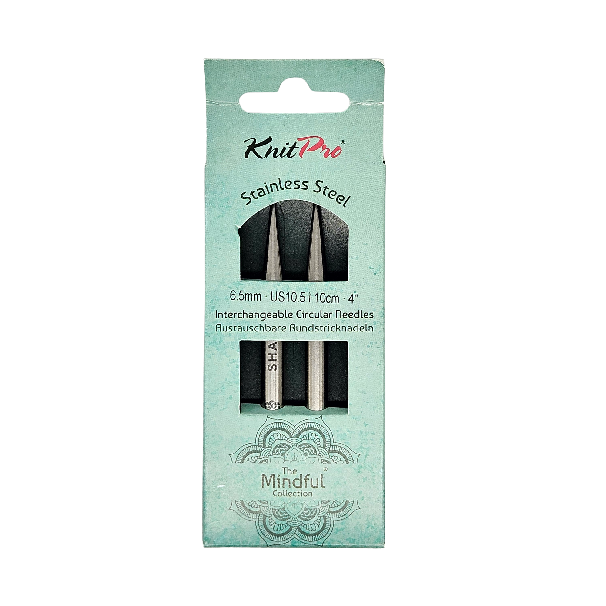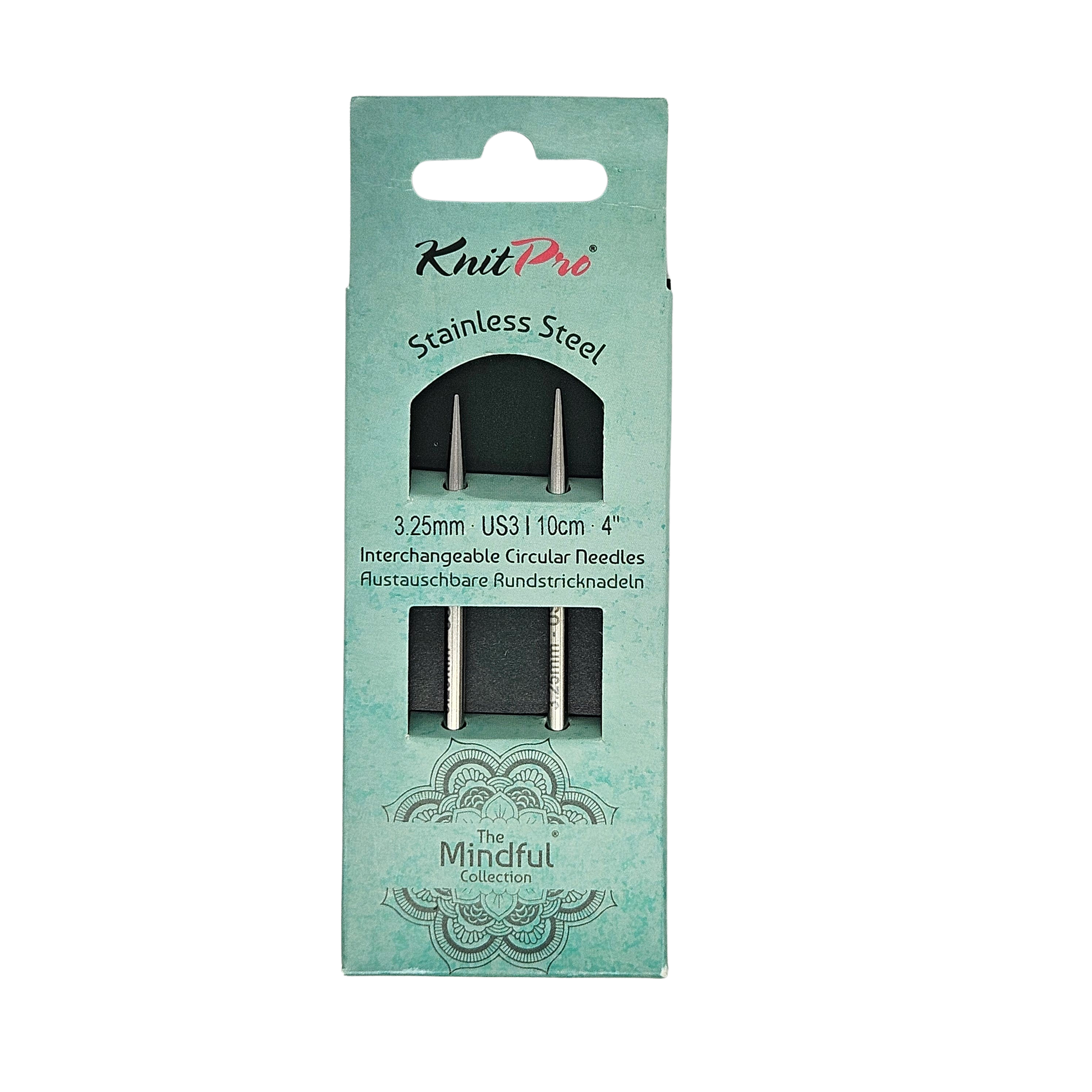 Punte intercambiabili per ferri circolari in acciaio inossidabile da 10cm. Questa lunghezza è molto comoda e permette di lavorare più velocemente. Le punte sono affusolate con finitura liscia.